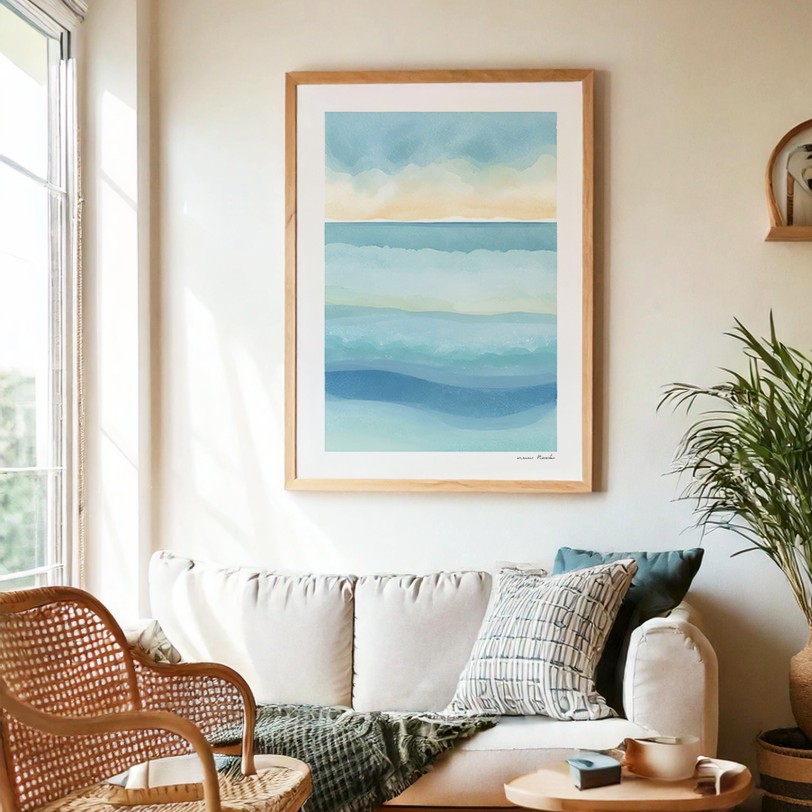 アートポスター 抽象画ポスター 水彩 水彩画 アブストラクト ジャパンディ 北欧 リビング 玄関 寝室 ベッドルーム キッチン トイレ 観葉植物 新居 新築祝い 引越祝い 模様替え 自分時間 ご褒美 ギフト マキシマリスト グラデーション 海 空 波 鏡花水月 夕日 夕暮れ 猛暑