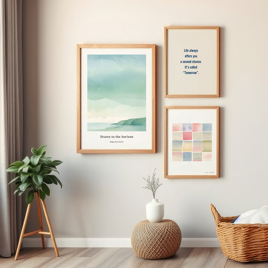 アートポスター 抽象画ポスター 水彩 水彩画 アブストラクト ジャパンディ 北欧 リビング 玄関 寝室 ベッドルーム キッチン トイレ 観葉植物 新居 新築祝い 引越祝い 模様替え 自分時間 ご褒美 ギフト マキシマリスト グラデーション 海 空 波 鏡花水月 夕日 夕暮れ 猛暑