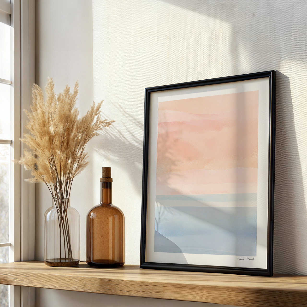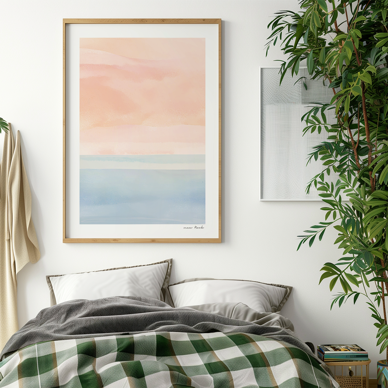 アートポスター 抽象画ポスター 水彩 水彩画 アブストラクト ジャパンディ 北欧 リビング 玄関 寝室 ベッドルーム キッチン トイレ 観葉植物 新居 新築祝い 引越祝い 模様替え 自分時間 ご褒美 ギフト マキシマリスト グラデーション 海 空 波 鏡花水月 夕日 夕暮れ 猛暑