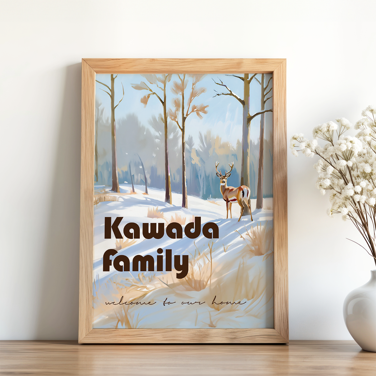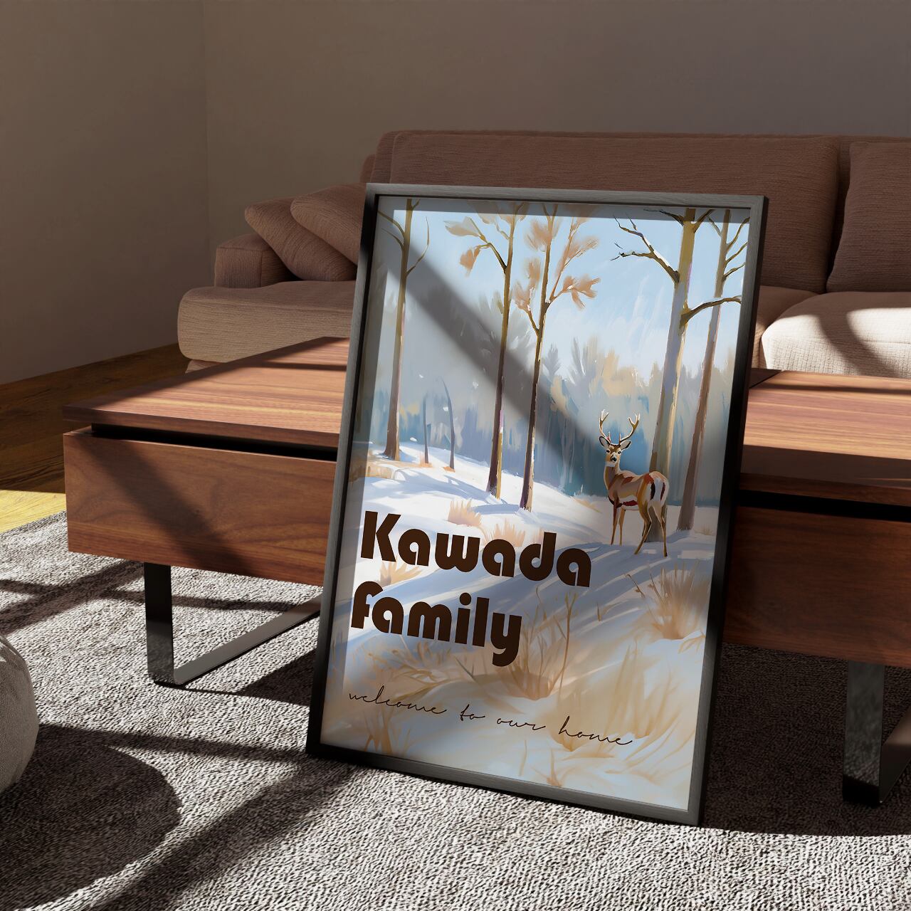 名入れウェルカムポスター 玄関飾り ファミリーポスター ウェルカムボード 名入れギフト 冬景色 鹿