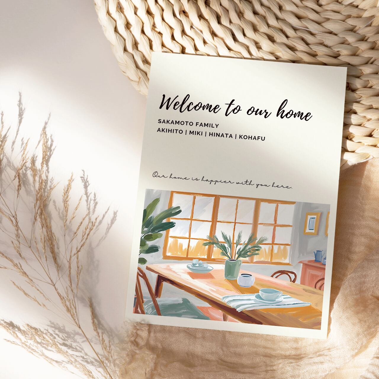 ポスター ウェルカムポスター ウェルカムボード インテリア インテリアポスター アート 玄関 マイホーム 家族 子供 名入れ 名入り 名前入り リビング 美容室 ヘアサロン サロン 新居 新築 新築祝い 転居 引っ越し 引越祝い 開店 開模 様替え ギフト