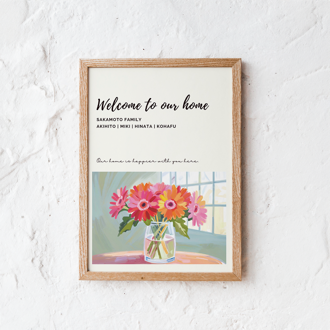 ご家族のお名前入りWelcomeアートポスターです。