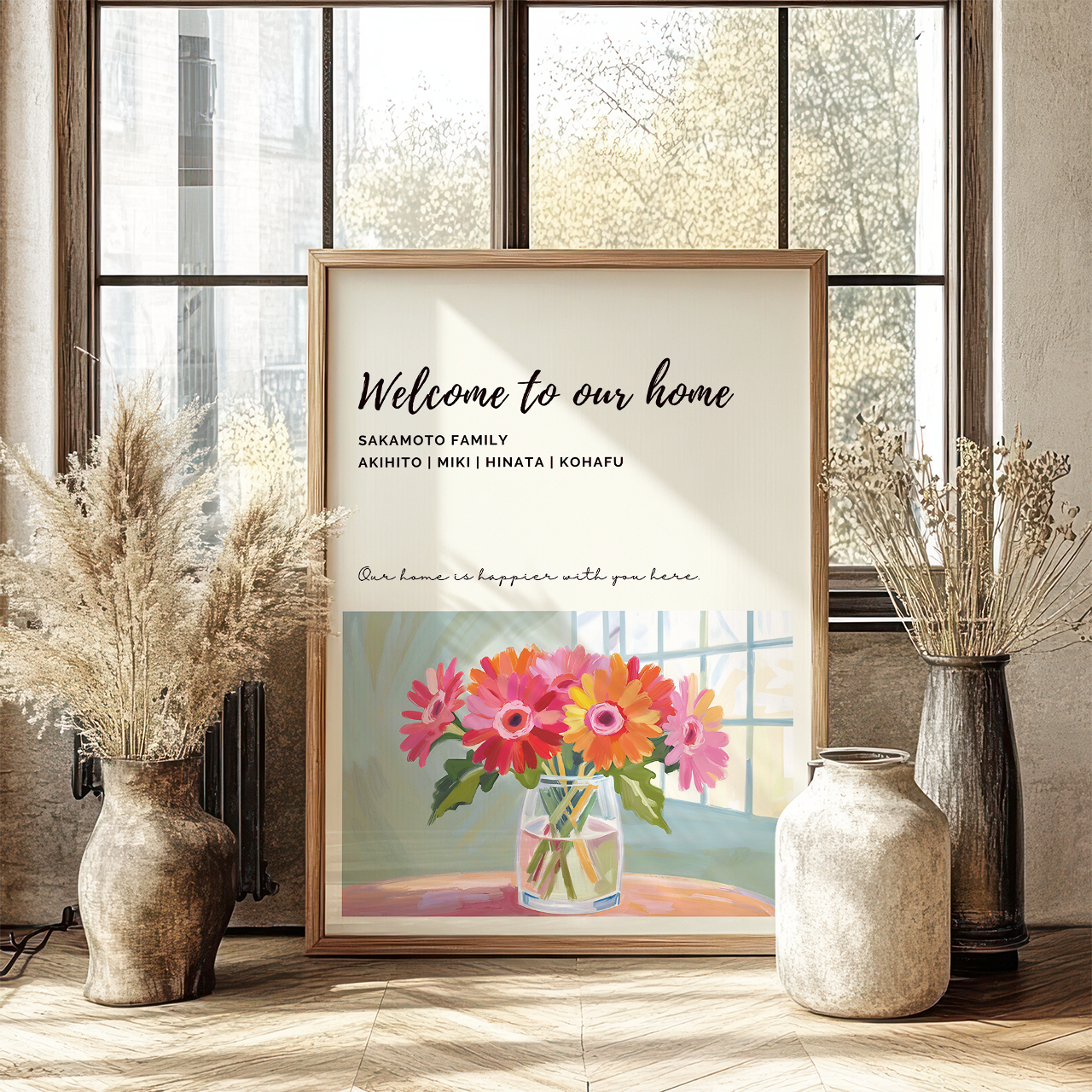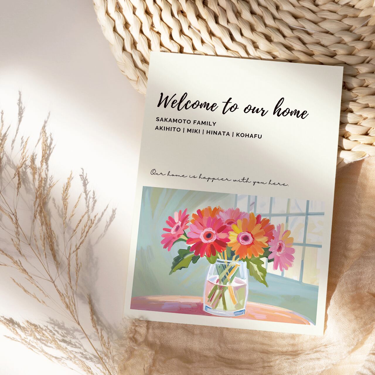 ポスター ウェルカムポスター ウェルカムボード インテリア インテリアポスター アート 玄関 マイホーム 家族 子供 名入れ 名入り 名前入り リビング 美容室 ヘアサロン サロン 新居 新築 新築祝い 転居 引っ越し 引越祝い 開店 開模 様替え ギフト